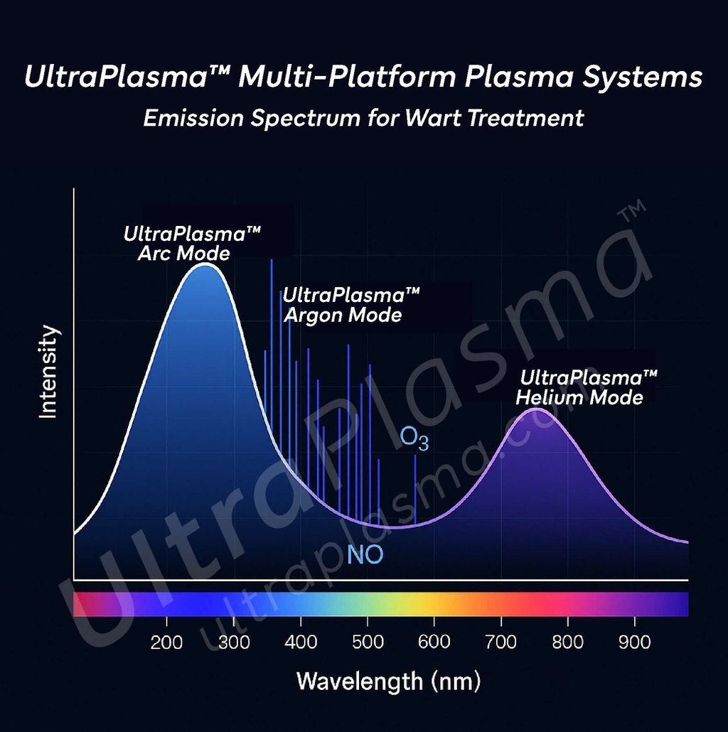 Their treatment requires both viral clearance and local tissue regeneration. UltraPlasma™, an advanced system that integrates arc, argon, and helium plasma technologies with a custom software and hardware-controlled output spectrum, introduces a novel multi-gas plasma therapeutic strategy tailored for effective wart removal, immunological modulation, and dermal regeneration.